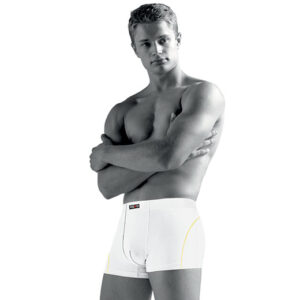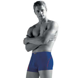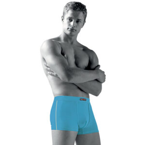Niebieskie slipy męskie z przeszyciami i szerokim pasem.